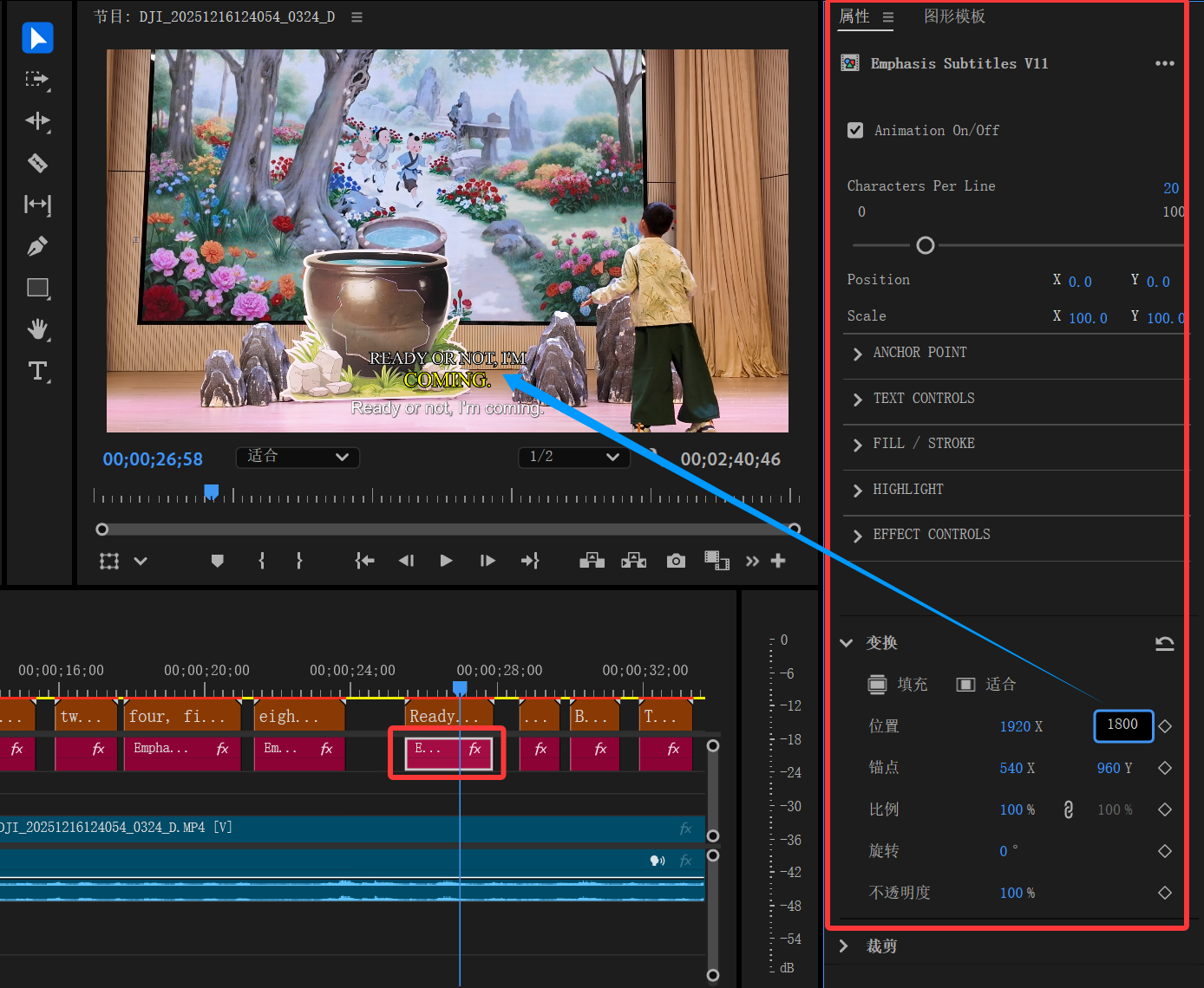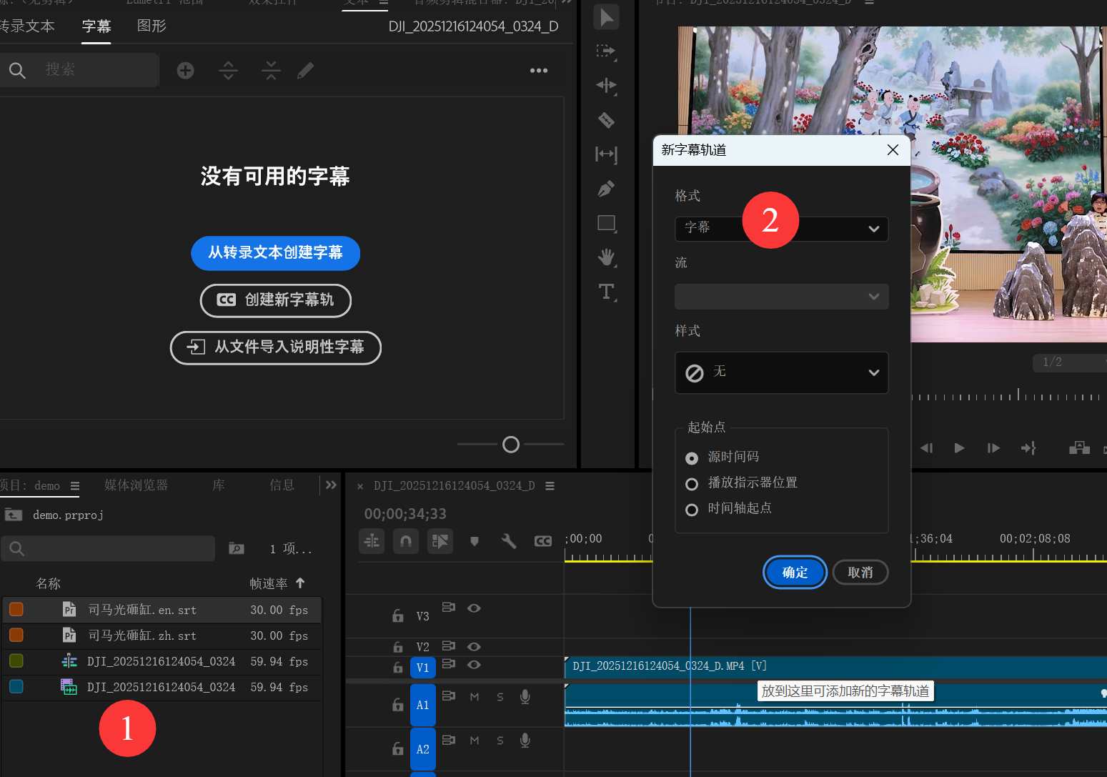 编辑新字幕(可以选择一个,或者多选/全部选择)的属性