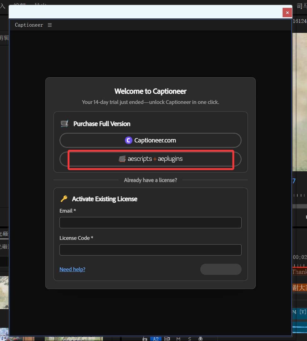 注意:第一次打开插件的时候要选aescripts框架,如果之前选的不是aescripts,可以到以下路径删掉Captioneer这个文件夹: